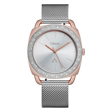 TRNDA Women's Watch with Rose Gold Stainless Steel Case and Silver Stainless Steel Band