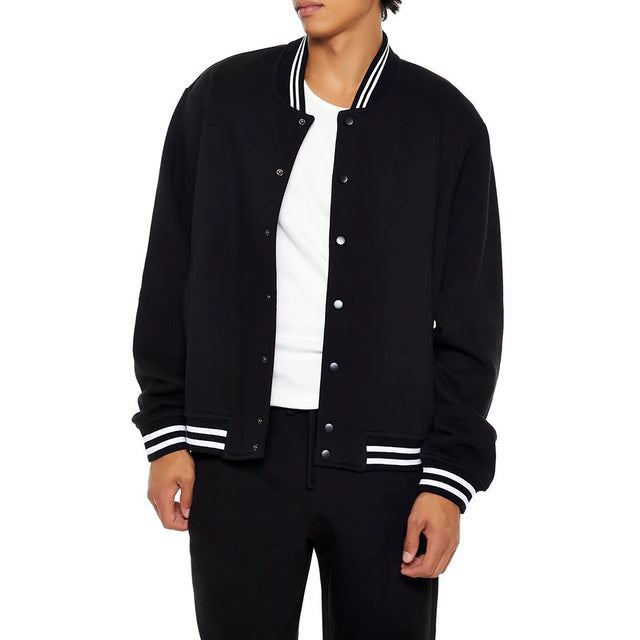 Forever 21 - Heathered Varsity Bomber Jacket - Sold by FIG - S / Black is backordered and will ship as soon as it is back in stock.