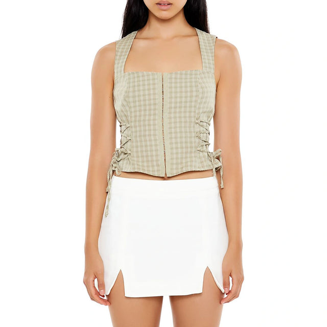 Forever 21 - Gingham Lace-Up Crop Top - Sold by FIG