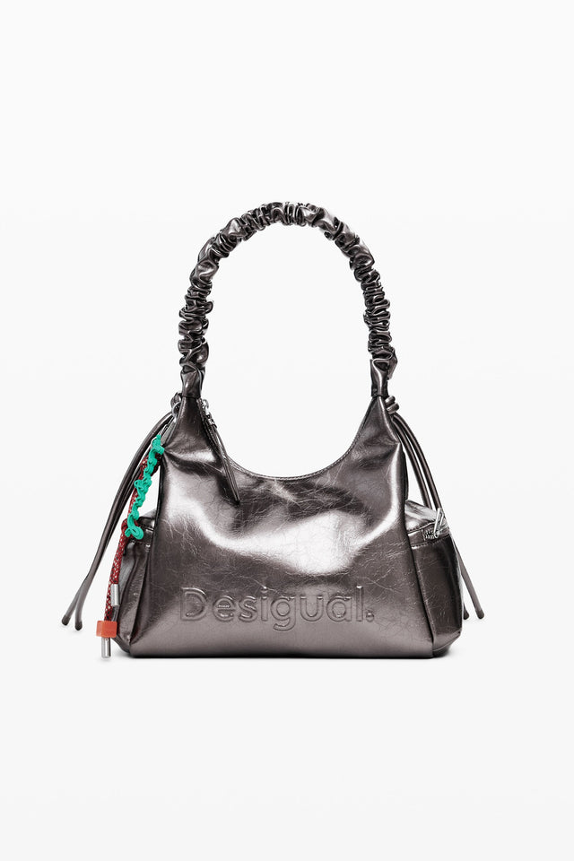Desigual - Metallic medium 3D logo bag with ruched handle