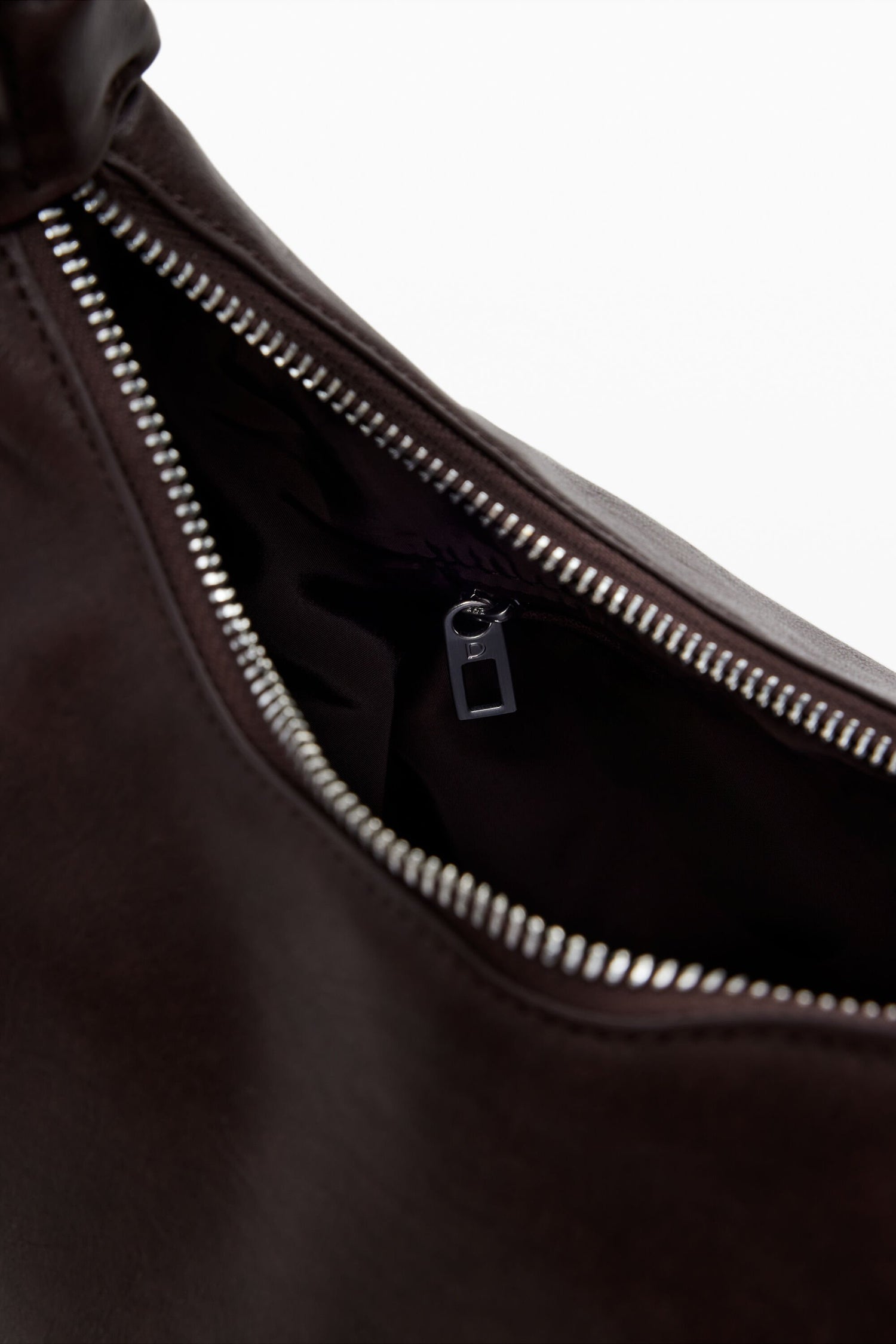 100% POLYURETHANE - Medium-sized handbag in solid color faux leather fabric, 3D effect logo, adjustable handle with gathering and detachable keychain detail
