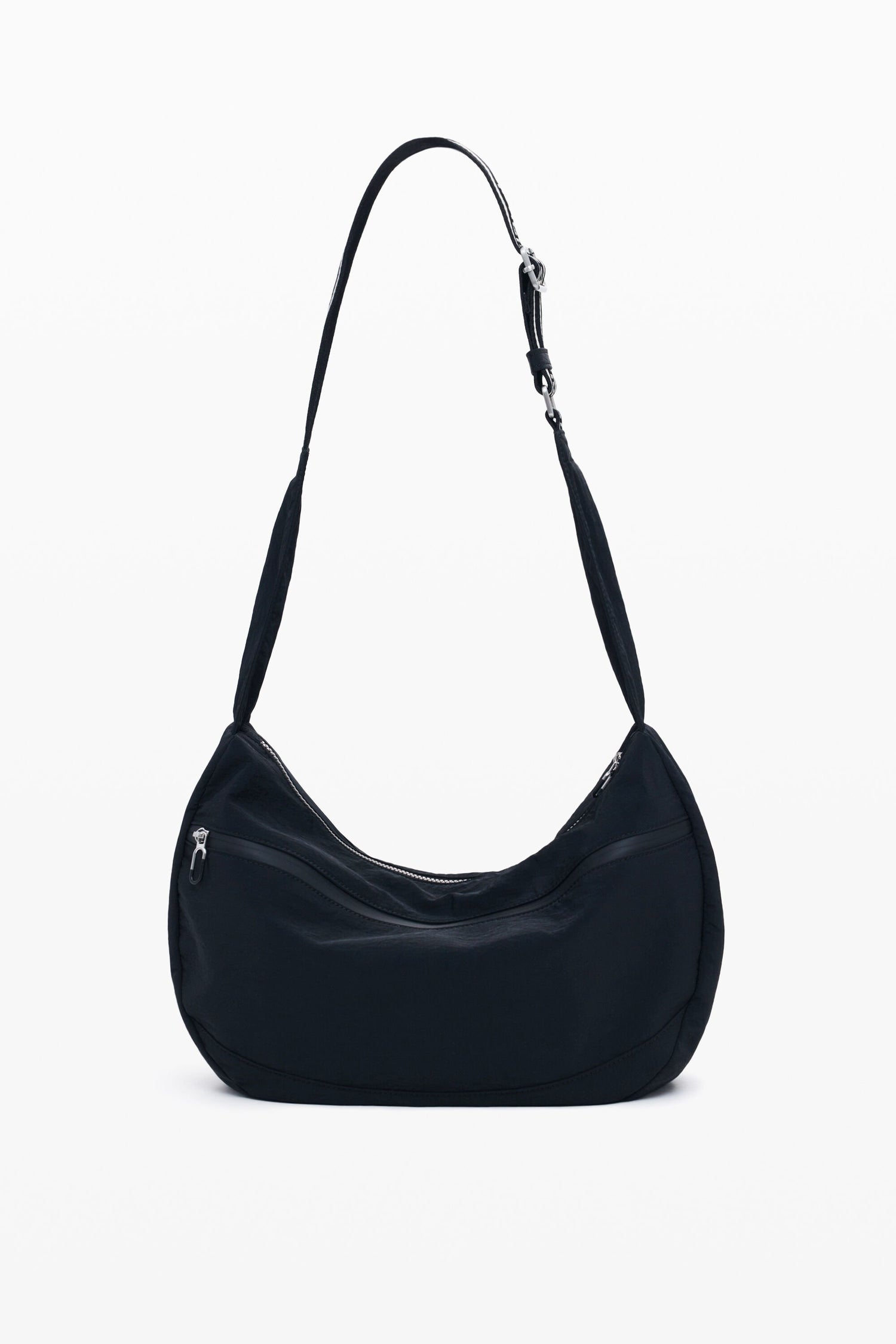 60% POLYESTER, 40% POLYAMIDE - Oversized travel-style nylon bag with multiple pockets and an adjustable handle in a solid color.