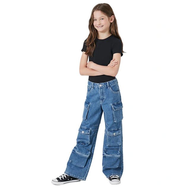 Forever 21 - Girls Wide-Leg Cargo Jeans (Kids) - Sold by FIG - 5-6Y / Blue is backordered and will ship as soon as it is back in stock.