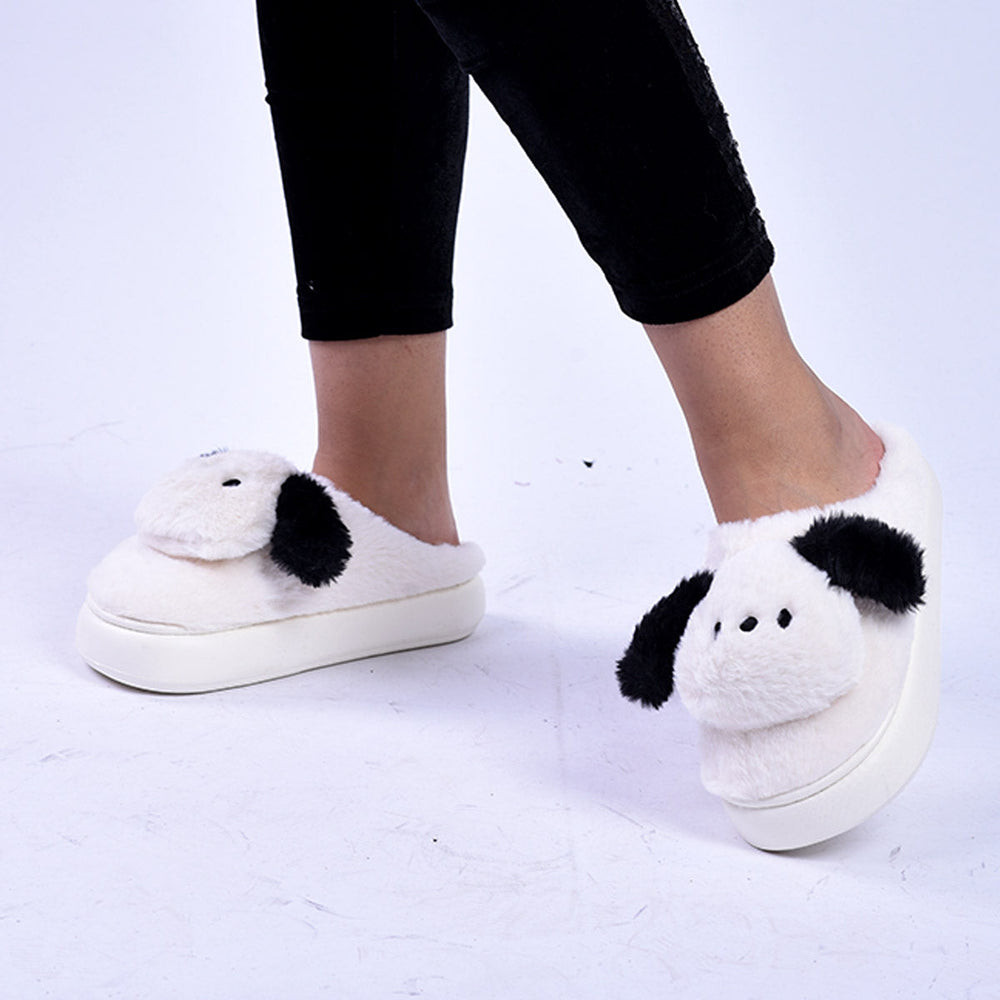 Winter Home Slipper With Anti-skid Thick Sole, Cartoon Puppy Pattern For Women's - 36/37 / White is backordered and will ship as soon as it is back in stock.