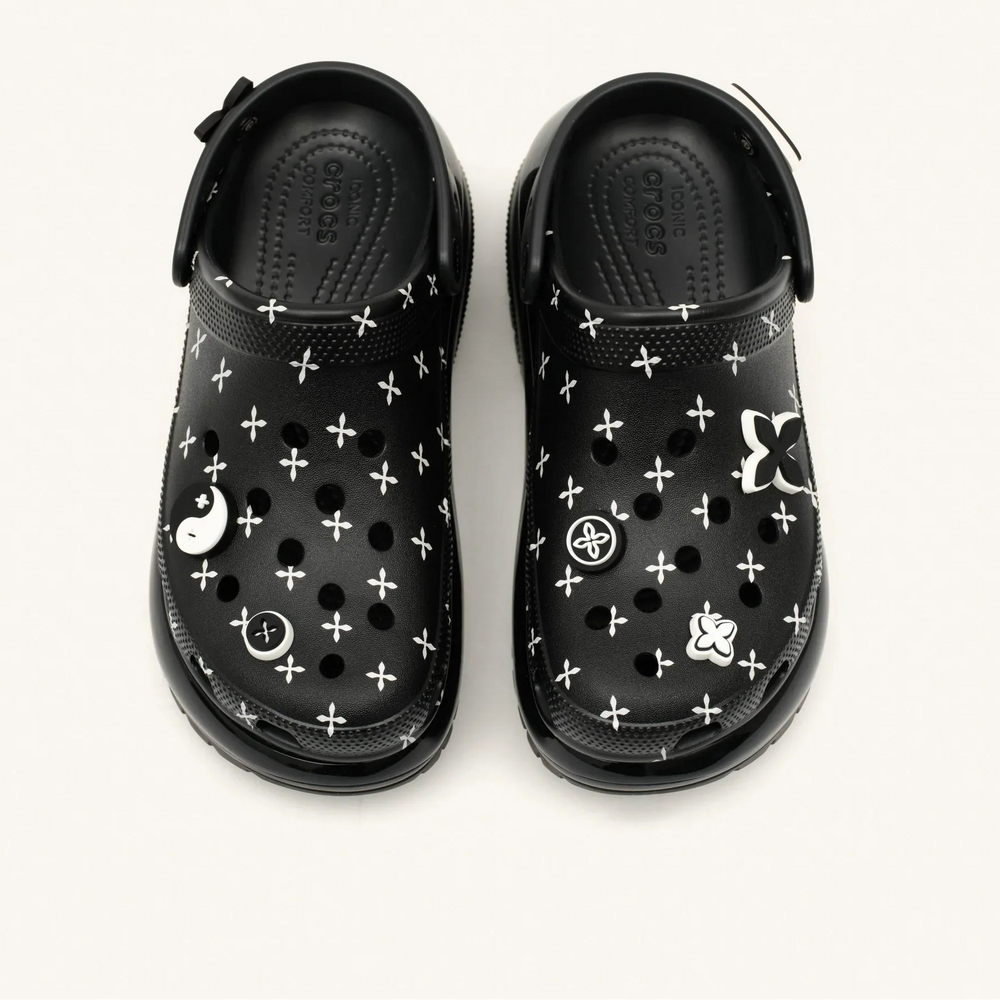 elements of the two partners, SMFK's Compass and Black Garden patterns with Crocs' classic model, establishing the very first SMFK X Crocs