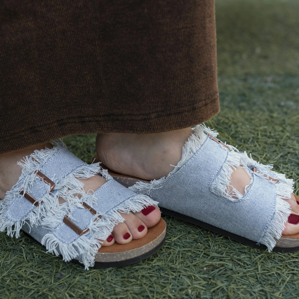 ✨ Comfortable denim flip flops for women