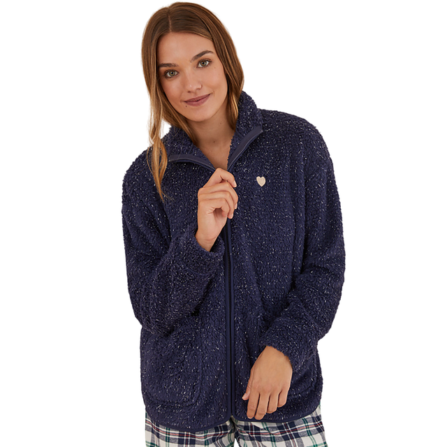 Women Secret - Lurex fur jacket - Sold by FIG - Navy / L تم طلبه مسبقًا وسيتم شحنه بمجرد عودته إلى المخزون.