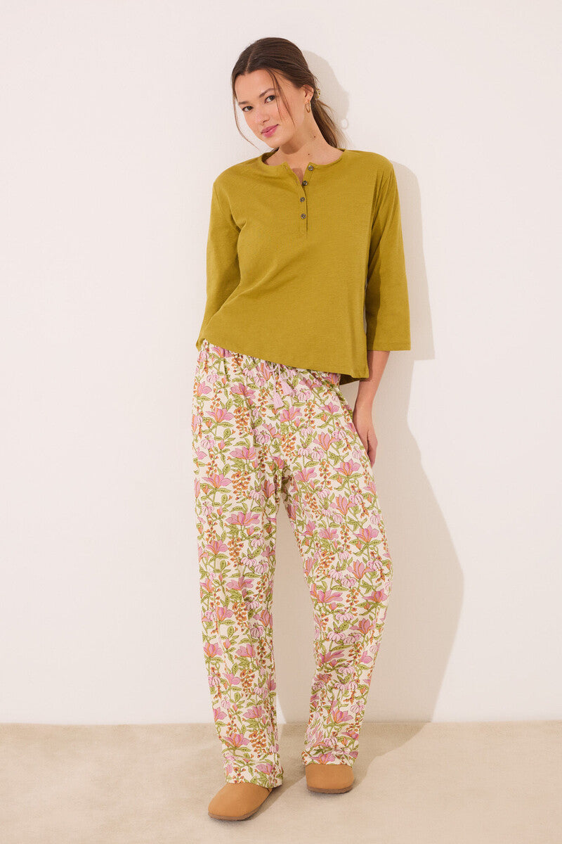 Plain long-sleeved shirt, 100% cotton fabric, khaki color. Wear it with the trousers from the collection you like the most and create your own combination. This way you multiply the options! - With a round neck and front flap with metal buttons. - By choosing our cotton products, you are supporting our investment in the Better Cotton initiative. - This garment is part of a special Chloe Sucré x Women'Secret collaboration. Model height: 176 cm. | She wears size S. Ref. 3279689 Composition and care Composition 100% cotton Care Maximum washing temperature 30C. Short spin Do not bleach Do not tumble dry Gentle ironing Do not dry clean
