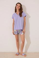 Women Secret-Short pajamas 100% cotton, lilac planters-sold by FIG - Purple / S تم طلبه مسبقًا وسيتم شحنه بمجرد عودته إلى المخزون.
