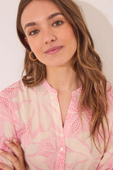 Women Secret-100% cotton voile shirt pajamas with floral print- sold by FIG - Pink / S تم طلبه مسبقًا وسيتم شحنه بمجرد عودته إلى المخزون.