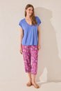 Women Secret-Viscose capri pants with purple/lilac print- sold by FIG - Purple / S تم طلبه مسبقًا وسيتم شحنه بمجرد عودته إلى المخزون.