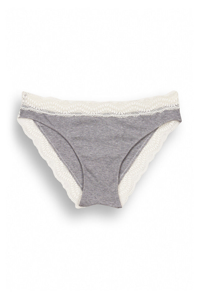 Classic panty made from grey ribbed cotton with delicate lace details.