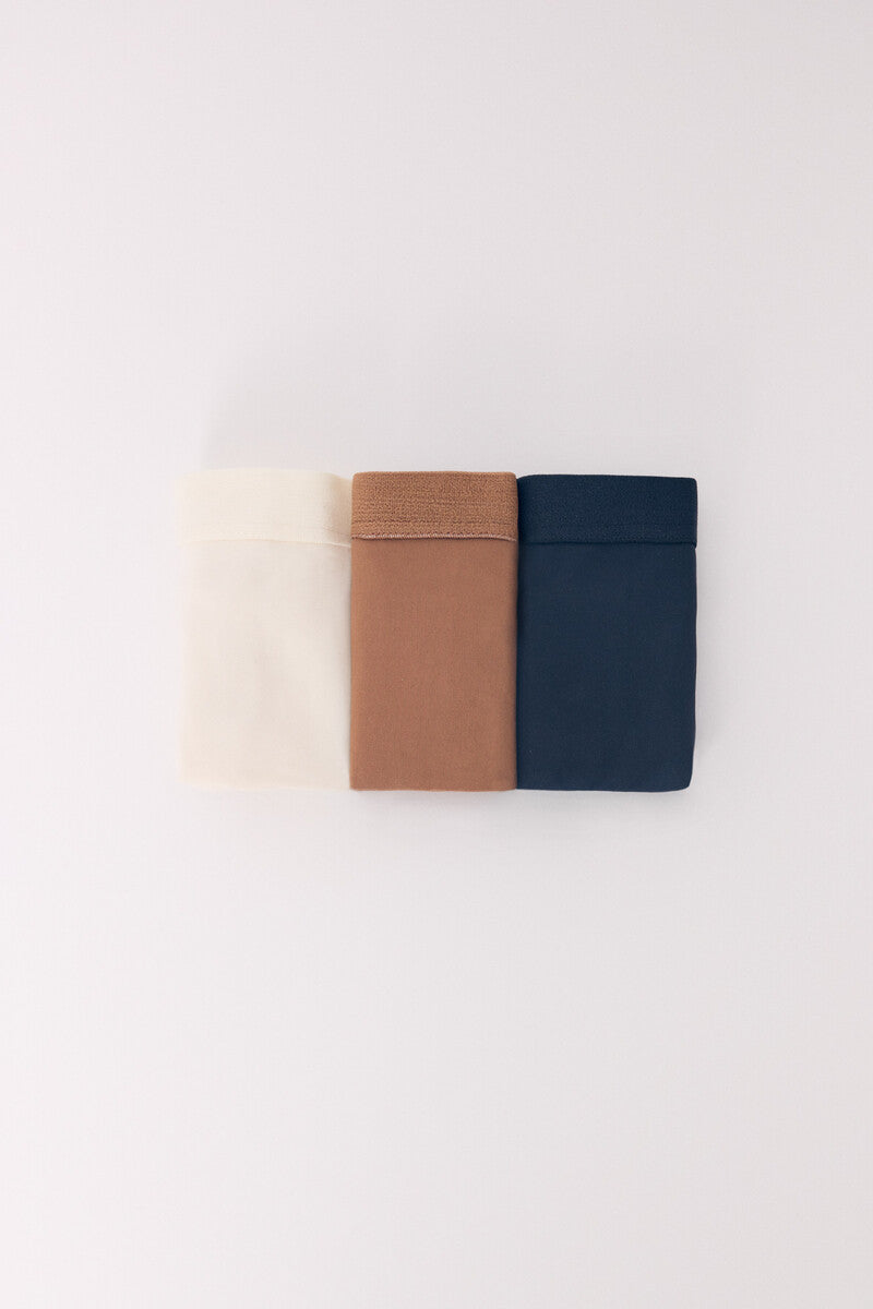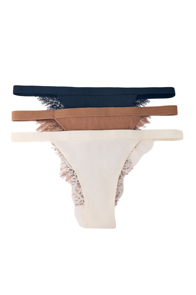Pack of three microfibre and lace Brazilian panties. Without a doubt, a must-have in your underwear drawer.