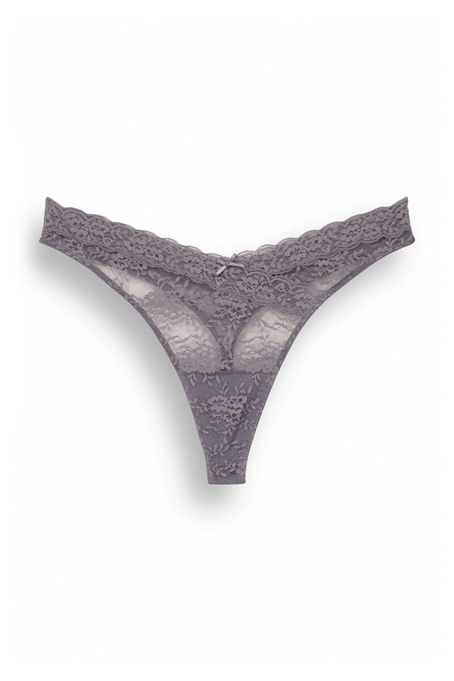 Classic thong, in grey, with a delicate lace design and a small bow detail at the centre of the waist. Combine it with your favourite bra and create a spectacular lingerie set!