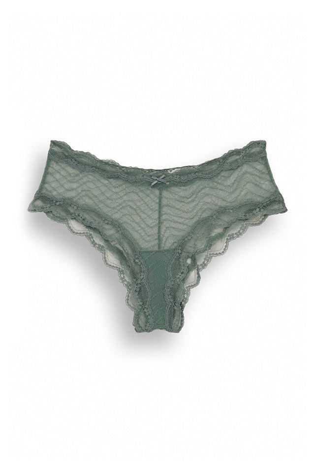 Wide Brazilian panty, in khaki, with a delicate lace design and a small bow detail at the center of the waist. Combine it with your favorite bra and create a spectacular lingerie set!