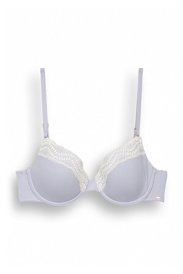 BEAUTIFUL classic bra in blue ribbed cotton with delicate lace detailing. It is also underwired and padded, which will enhance the natural beauty of your bust. Isn't it perfect?