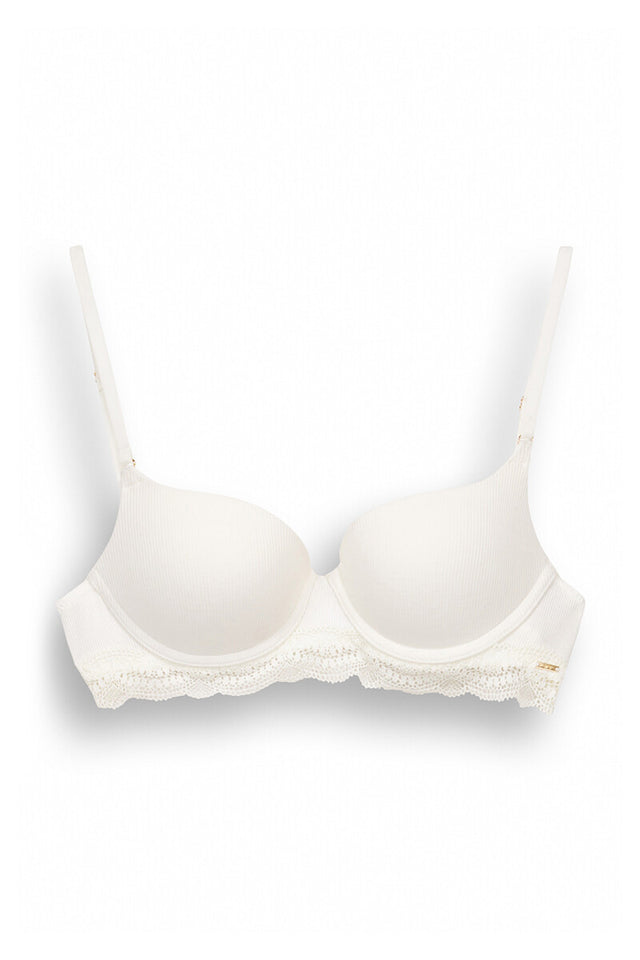 GORGEOUS push-up bra made from ribbed cotton in ivory. With delicate white lace detailing. Natural push-up effect up to half a size!