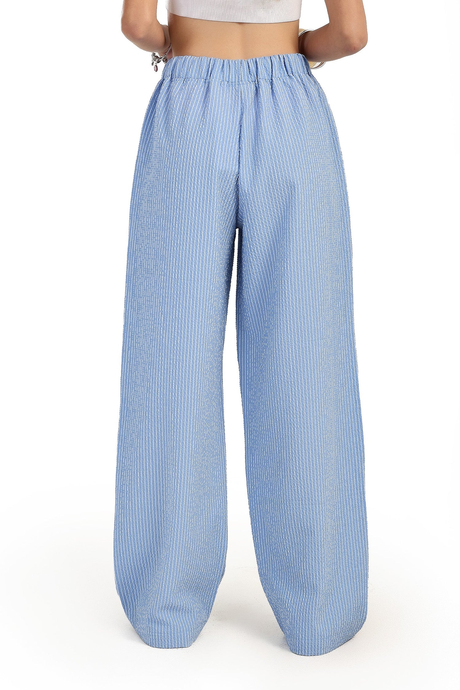 كارينا - بنطال مخطط واسع الساق - أزرق / S تم طلبه مسبقًا وسيتم شحنه بمجرد عودته إلى المخزون.