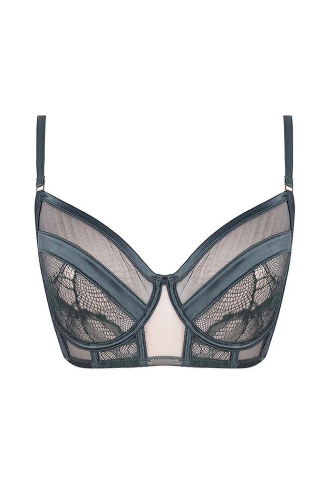FANTASTIC bustier bra, with underwire and without padding, for those who love comfort without losing support. Made with green floral lace and satin details. Sensational and comfortable!