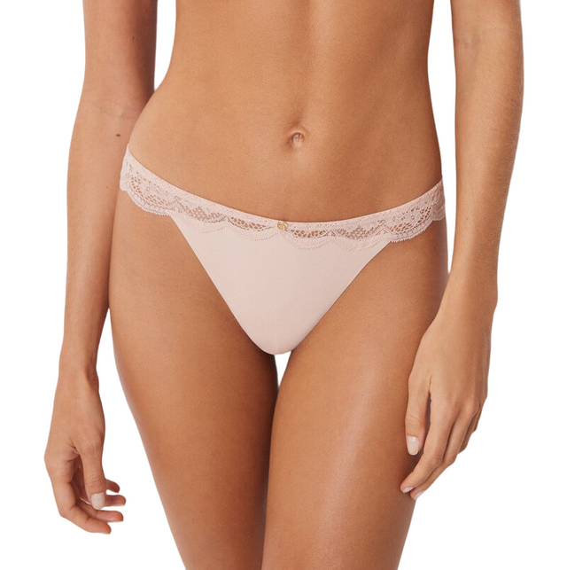 Pink thong with a beautiful and delicate microfibre design and lace details. A must-have in your underwear drawer.