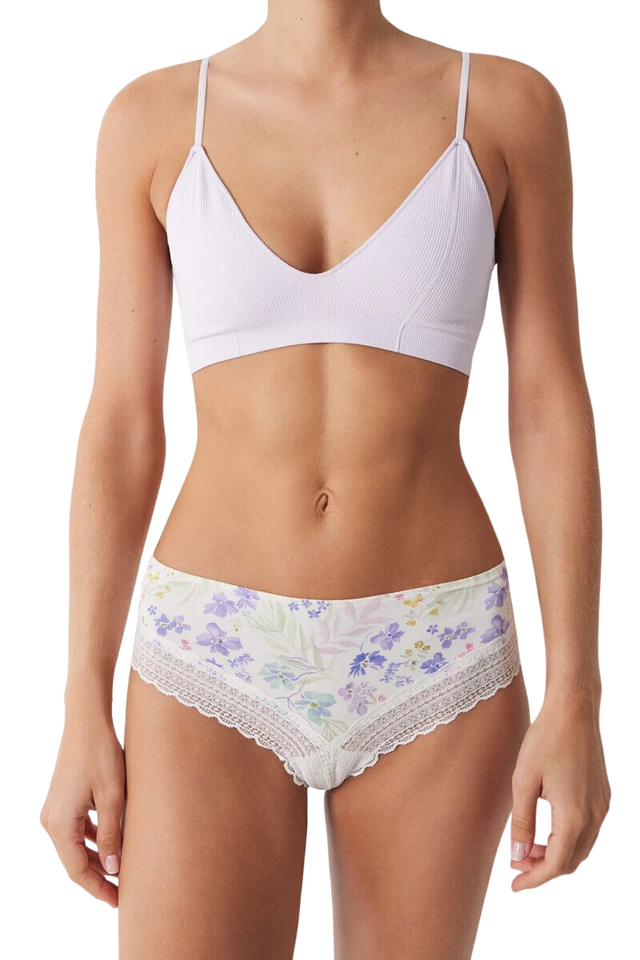 Microfibre Brazilian briefs in white with a contrasting floral print. They also have lace details around the legs for added comfort. Pair them with your favourite bra and create a spectacular lingerie set!