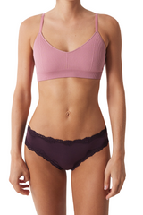 Wide Brazilian briefs in purple with lace detailing all around for added comfort. Pair with your favourite bra and create a spectacular lingerie set!