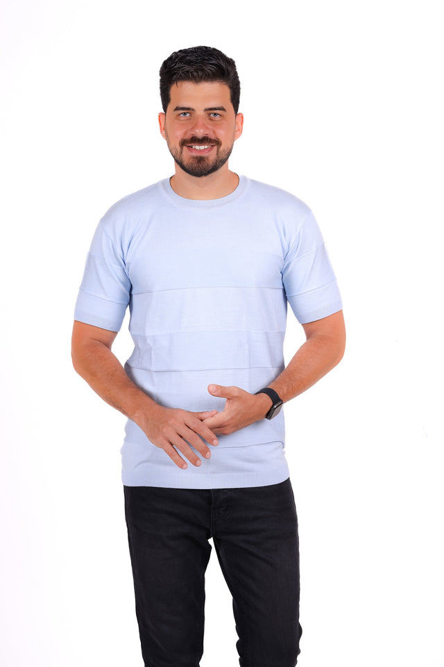Knitwear Round T_Shirt MHS04 - Baby Blue / 3XL تم طلبه مسبقًا وسيتم شحنه بمجرد عودته إلى المخزون.
