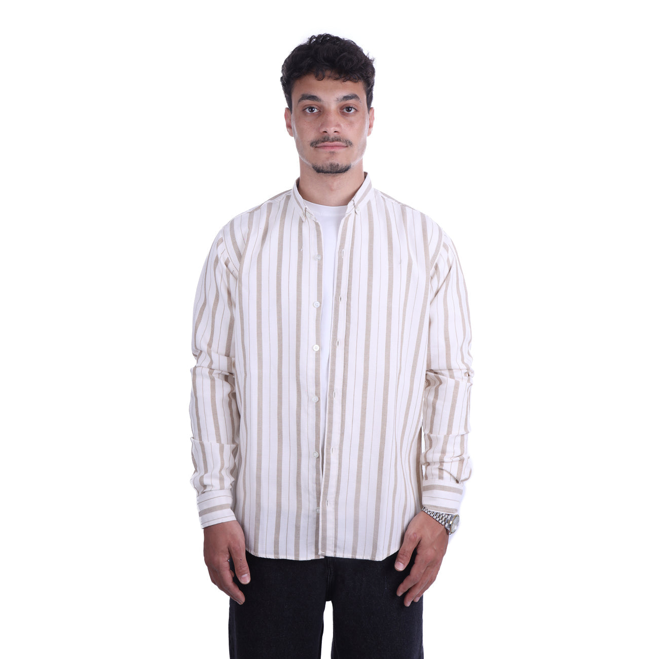 Off White Poplin Striped Line